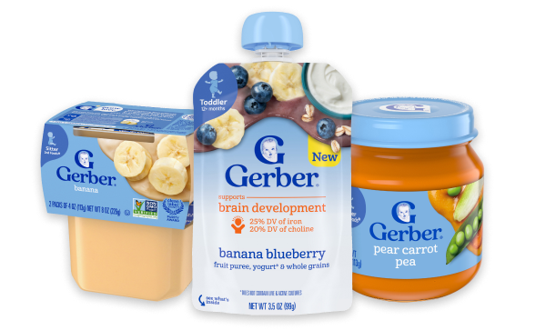 From ready to eat pouches to quick and easy meal options, Gerber foods for toddlers are made to our highest quality standards, using nutritious veggies, grains, meats and fruits to help provide toddlers with the nutrient-dense foods they need.